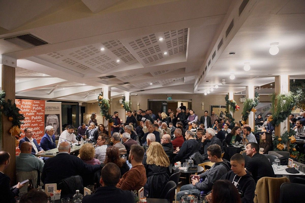 Εκατοντάδες άνθρωποι κάθε ηλικίας βρέθηκαν την Τρίτη (10/12/2024) το βράδυ στα Public Cafe Συντάγματος, προκειμένου να παρακολουθήσουν από κοντά την παρουσίαση της αυτοβιογραφίας του Παναγιώτη Γιαννάκη "Τρωτός Άτρωτος". Συγγραφέας του βιβλίου είναι ο δημοσιογράφος και διευθυντής του SPORT24, Παντελής Βλαχόπουλος.