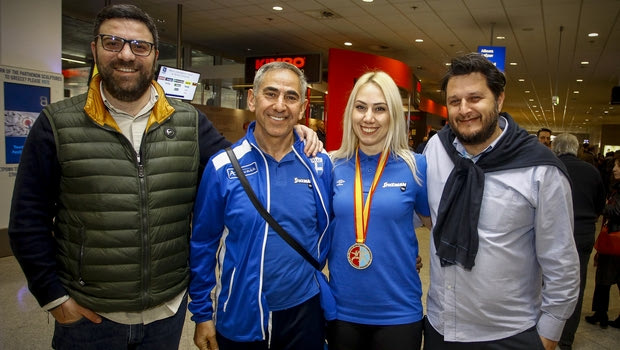 Στο αεροδρόμιο την υποδέχτηκαν ο Γιώργος Κυπραίος από το τμήμα χορηγιών της Stoiximan, αλλά και η Progame που εκπροσωπεί τον αθλητή, με τον Βασίλη Σίμο.