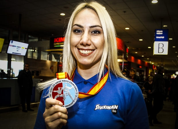 Η Έλενα Χατζηλιάδου επέστρεψε στην Αθήνα την Κυριακή (31/3) έχοντας κρεμασμένο στο στήθος της το ασημένιο μετάλλιο από το ευρωπαϊκό πρωτάθλημα καράτε. (Photos)