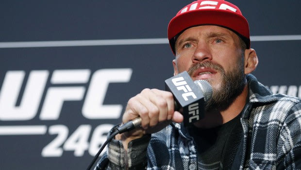 Donald "Cowboy" Cerrone speaks during a media event for the UFC 246 mixed martial arts bout, Thursday, Jan. 16, 2020, in Las Vegas. Cerrone is scheduled to fight Conor McGregor in a welterweight bout Saturday in Las Vegas. (AP Photo/John Locher)