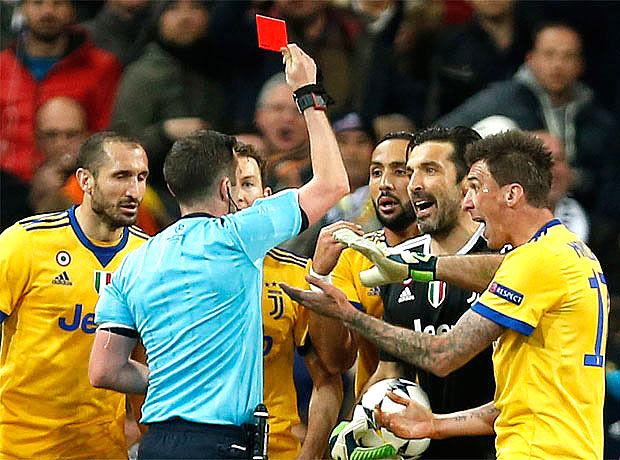 Ο εξοργισμένος Μπουφόν την “έπεσε” στον διαιτητή διαμαρτυρόμενος – μαζί με όλους τους συμπαίκτες του – και αντίκρισε την απευθείας κόκκινη κάρτα. Αμέσως μετά την αποβολή του, αφιέρωσε στον Όλιβερ ένα μεγαλοπρεπές “βαφανκούλο”, ενώ λίγο αργότερα, στη μικτή ζώνη, δήλωσε ότι ο ρέφερι, “στη θέση της καρδιάς, έχει έναν σκουπιδοτενεκέ”! Το πέναλτι έκανε έξαλλους τους Ιταλούς, που είδαν να εξαφανίζεται ξαφνικά όλος ο αγώνας που έδωσαν για να πετύχουν μια ιστορική ανατροπή. Η εικόνα του Μπουφόν να αποβάλλεται στην τελευταία ίσως εμφάνισή του στο Champions League, ήταν το αποκορύφωμα της “τραγωδίας”, που κλήθηκαν να αντιμετωπίσουν οι Γιουβεντίνοι σε μια τελείως σουρεαλιστική αλλαγή συναισθημάτων, από το ζενίθ στο ναδίρ. Η εκτέλεση του Κριστιάνο ήταν πραγματικά άψογη και ο τρόπος που πανηγύρισε αμέσως μετά την επίτευξη του γκολ, απόλυτα γραφικός, όμως από την άλλη, κανείς δεν πρέπει να ξεχνά την πίεση και την ένταση της στιγμής, με ολόκληρο το “Μπερναμπέου” να έχει λυγίσει από την αγωνία, αλλά τον Πορτογάλο να μένει ψύχραιμος και να στέλνει τη μπάλα στο παραθυράκι του Στσέσνι.