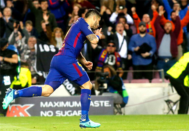 Ο Λουίς Σουάρες πανηγυρίζει το πρώτο του ευρωπαϊκό γκολ στη φετινή σεζόν, μετά από 13 μήνες και 1057 αγωνιστικά λεπτά!