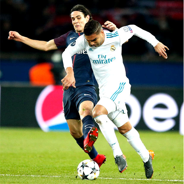 Καβάνι και Καζεμίρο. Ο πρώτος δεν μπόρεσε να φανεί ιδιαίτερα παρά το γκολ του, ενώ ο δεύτερος ήταν ο κορυφαίος του γηπέδου (AP Photo/Francois Mori)