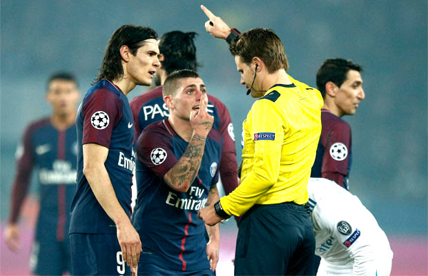 Η στιγμή της αποβολής του Μάρκο Βεράτι (AP Photo/Francois Mori)