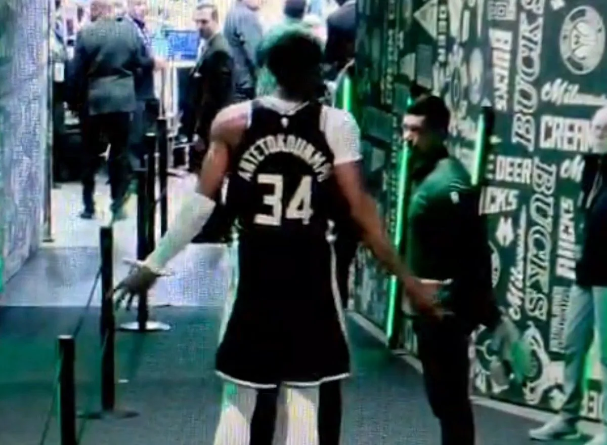 Στον διάδρομο του Fiserv Forum που οδηγεί τον πάγκο, είδε τον γιατρό και τον προσωπικό του γυμναστή, τον Τόμι Μπράις που τον είχε ακολουθήσει και το περασμένο καλοκαίρι σε όλο το ταξίδι με την Εθνική, να μπαίνουν εμπόδιο στην επιθυμία του.