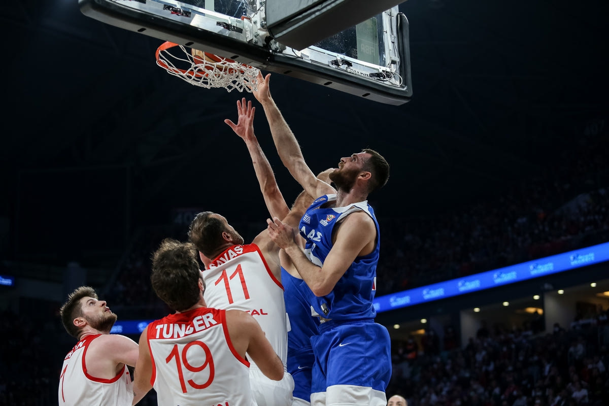 Και οι τρεις ψηλοί της Τουρκίας είχαν μαζί 12 πόντους και 14 ριμπάουντ. Ο Παπαγιάννης, ουσιαστικά δεν είχε αντίπαλο, πόσο μάλλον όταν οι γκαρντ της Εθνικής τον έψαχναν διαρκώς. Από τις 24 ασίστ που έδωσε συνολικά η ομάδα (9 ο Σλούκας, που μοίρασε υποδειγματικά την μπάλα) οι περισσότερες κατέληγαν στα χέρια του και το καλάθι της Τουρκίας στέναζε από τα καρφώματα του.