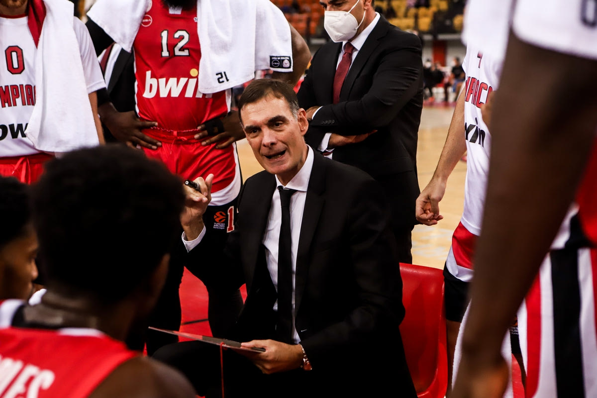 Ο Γιώργος Μπαρτζώκας δίνει οδηγίες στους παίκτες του Ολυμπιακού Andreas Papakonstantinou / Tourette Photography