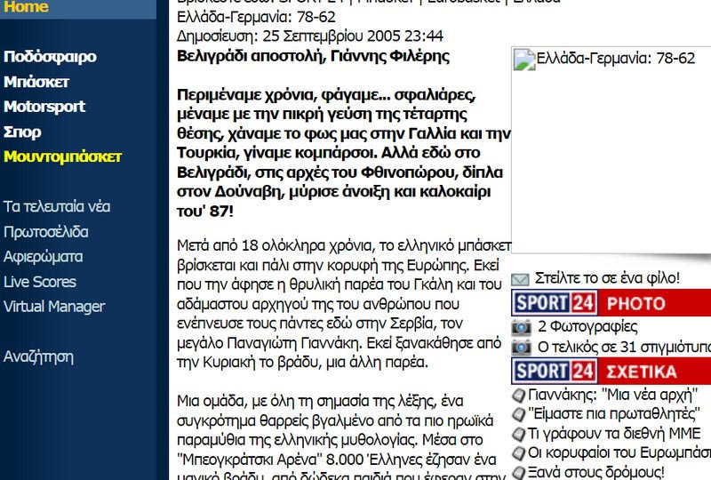 Ό,τι κι αν έκανε ο τεράστιος Ντιρκ, η ελληνική ομάδα προεξάρχοντος του αφηνιασμένου Θοδωρή Παπαλουκά (22π) δεν μπορούσε να στερήσει από την Εθνική την ολοκλήρωση ενός πραγματικού άθλου. Η ελληνική ομάδα μετά από 18 χρόνια βρισκόταν στην κορυφή της Ευρώπης, για δεύτερη φορά στην ιστορία της. Σχεδόν τόσα έχουν περάσει από εκείνο το βράδυ της 25ης Σεπτεμβρίου, που και για το SPORT24 ήταν ιστορικό.