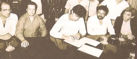 Ο Σούμποτιτς υπογράφει στον Άρη. Από αριστερά Στέργιος Μπουσβάρος, ο πρόεδρος Άκης Μιχαηλίδης, ο Θεόφιλος Μητρούδης και ο νυν δήμαρχος Θεσσαλονίκης Γιάννης Μπουτάρης. Οι χρηματοδότες του Άρη…