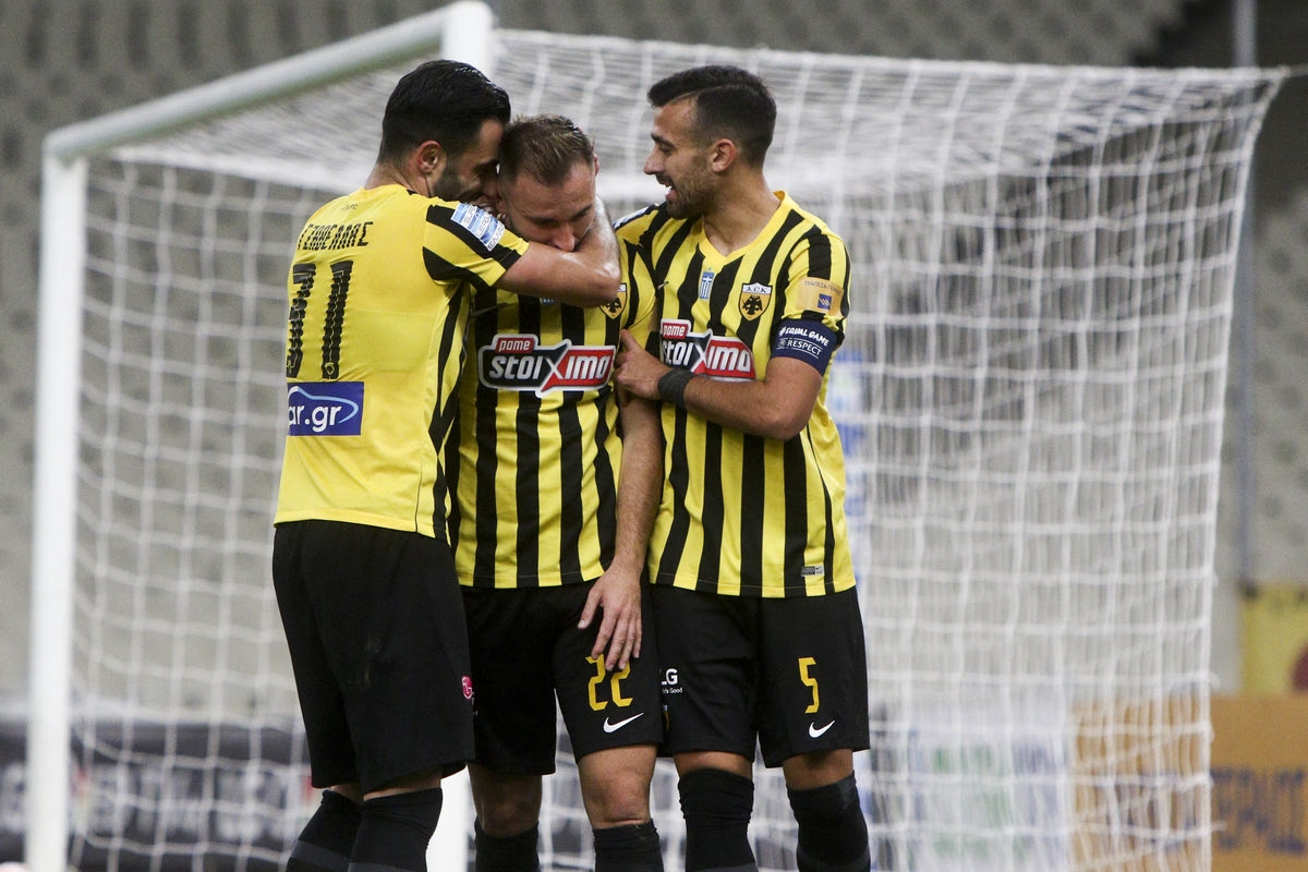 Οι ποδοσφαιριστές της ΑΕΚ πανηγυρίζουν για το 4-0 επί της Κηφισιάς Georgia Panagopoulou / Tourette Photography