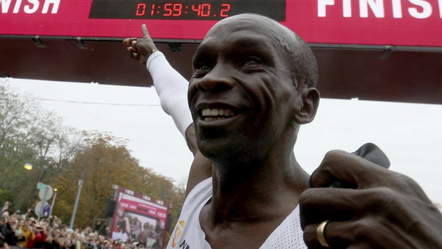 Ο Ελίουντ Κιπτσόγκε έγινε ο πρώτος άνθρωπος που καταφέρνει να τρέξει σε Μαραθώνιο, κάτω από δυο ώρες! Στη Βιέννη σε έναν αγώνα που τον είχε σχεδιάσει πάντως στα μέτρα του (γι’ αυτό και δεν θα μετρήσει ως παγκόσμιο ρεκόρ) κάλυψε την απόσταση των 42.195 μέτρων σε 1 ώρα 59 λεπτά και 40 δευτερόλεπτα!