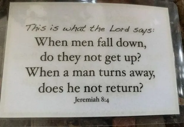 Στην άλλη πλευρά υπάρχει μια ρήση του προφήτη Ιερεμία από το ομώνυμο βιβλίο της Παλαιάς Διαθήκης και συνίσταται σε δυο ρητορικές ερωτήσεις…