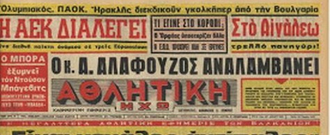 Ο Αρ. Αλαφούζος ήταν γνωστός και δεδηλωμένος Ολυμπιακός, και σε άλλο μεταγενέστερο πρωτοσέλιδο δημοσίευμα της “Αθλητικής Ηχούς” φέρεται να αναλαμβάνει στον Ολυμπιακό.