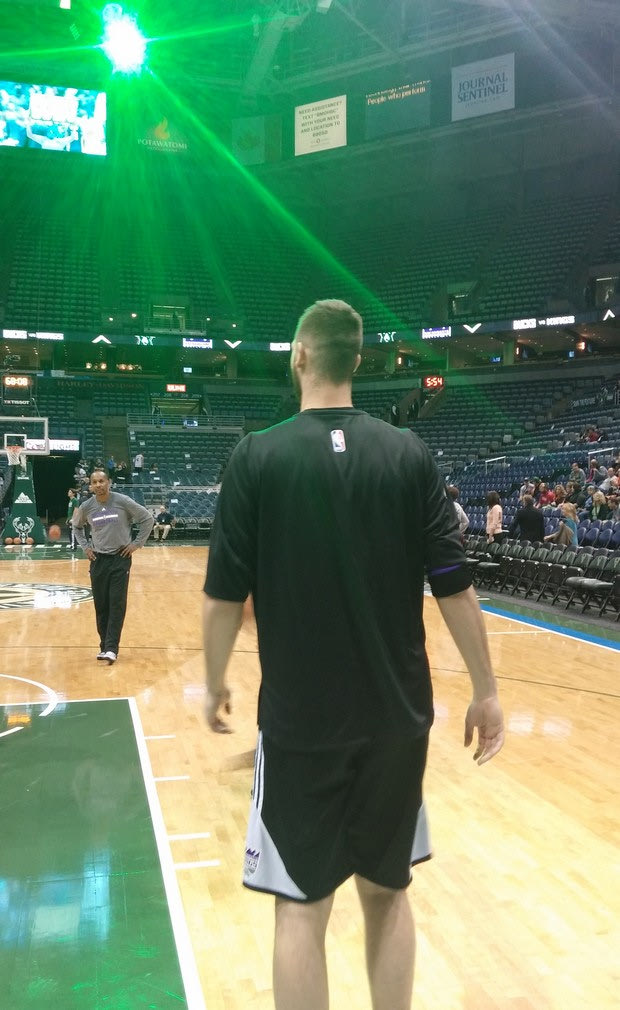 Στιγμές πριν από το ντεμπούτο του στο ΝΒΑ, στο ματς Μπακς – Κινγκς