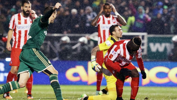 Ίσως και η βροχή να εμπόδισε τους παίκτες και των δυο ομάδων να πάνε φουριόζοι, εξάλλου αν ξεφύγεις, κινδυνεύεις και να την πατήσεις στο βρεγμένο χορτάρι. Επειδή όμως ένας αγώνας δεν διαρκεί 45 λεπτά, ήταν πολύ σημαντικό το δεύτερο ημίχρονο από τη στιγμή μάλιστα που θα εμφανίζονταν και παίκτες από τον πάγκο. Τρίχες… Ναι, όπως σας το γράφω. Η… ιστορία του ματς γράφτηκε δίχως πάγκο. Οι Πειραιώτες μπήκαν και έχασαν με τον Ντουρμάζ τη φάση του ματς. Η μπάλα πάντα κάνει τερτίπια και από τη στιγμή που ο Νάνο άρχισε να ανεβαίνει αριστερά, ήταν δεδομένο πως θα ανησυχήσει κόσμο. Έτσι ήρθε το πρώτο γκολ, άσχετα αν δε βγήκε ο Ρομπέρτο, άσχετα αν μπερδεύτηκε ο… σκόρερ Μαζουακού. Ο Παναθηναϊκός κινήθηκε σωστά στα αριστερά του γηπέδου και πήρε αυτό που ήθελε. Ο Ολυμπιακός υποχρεώθηκε να αλλάξει στυλ. Ο Περέιρα ζήταγε «κάτω τη μπάλα». Δεν το έκαναν οι παίκτες του. Γύρισε σε 4- 4- 2 με τον Χάρα, αλλά τίποτα.