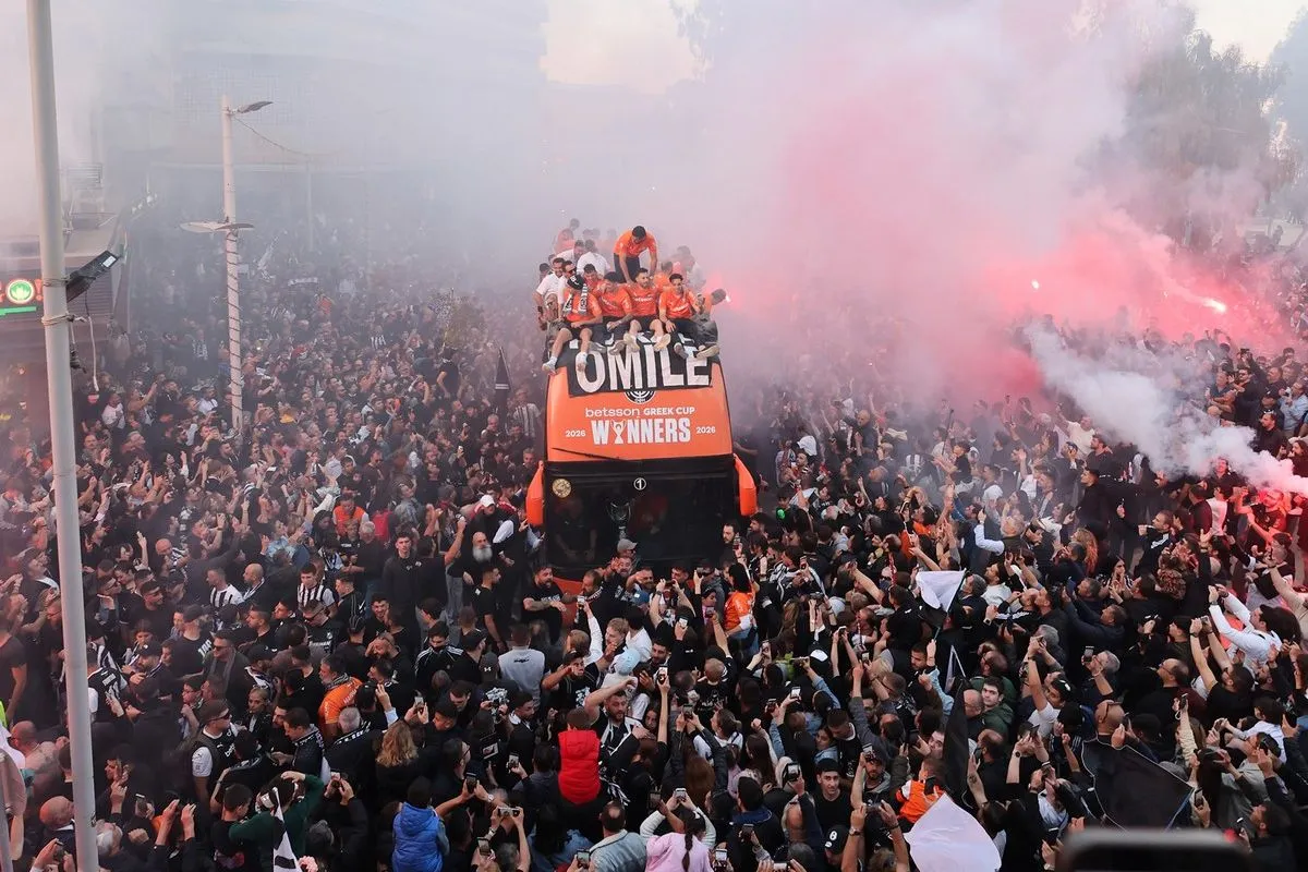 Ο κόσμος του Ηρακλείου έψαχνε με κάθε τρόπο να βρεθεί κοντά στο λεωφορείο της ομάδας. Με αυτοκίνητα, με μηχανάκια, με τα πόδια, οι φίλοι των ασπρόμαυρων δημιούργησαν ένα απίστευτο “ποτάμι” γύρω από τους ποδοσφαιριστές και τους ανθρώπους των Κρητικών. Οι κόρνες, τα καπνογόνα και τα πυροτεχνήματα “έντυσαν” το εορταστικό σκηνικό.