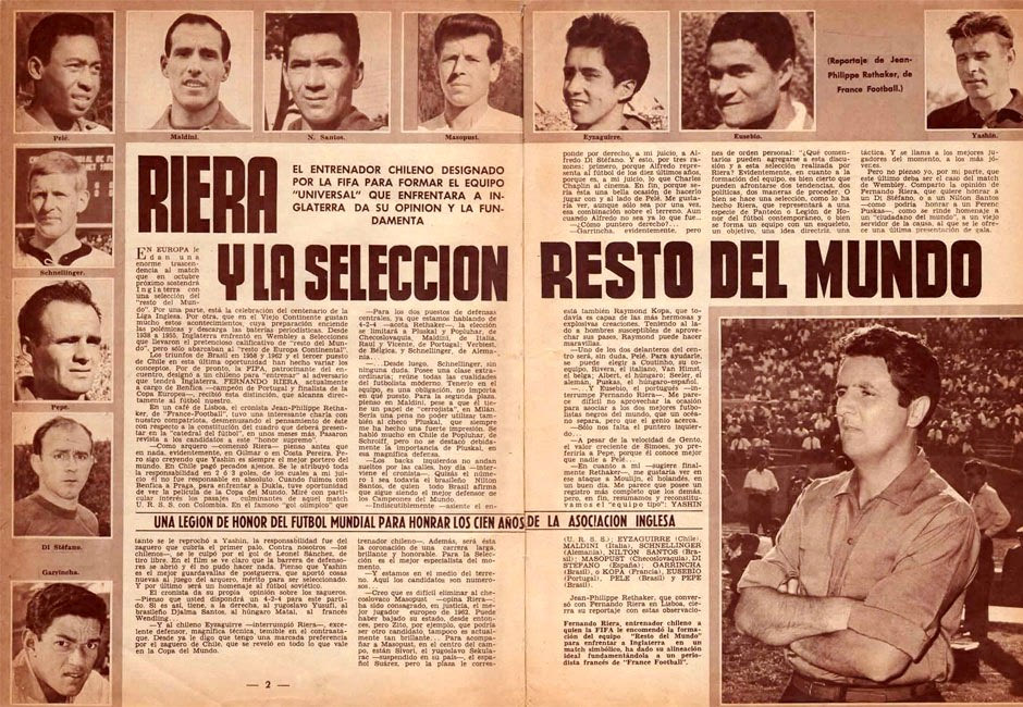 Ο Ριέρα είχε οδηγήσει την Χιλή ένα χρόνο πριν, στο Μουντιάλ του 1962, στην τρίτη θέση του τουρνουά, πίσω από τις Βραζιλία και Τσεχοσλοβακία. Ήταν ο προπονητής που καθιέρωσε την τετράδα στην άμυνα αλλά και το τεχνητό οφσάιντ. Η FIFA όρισε ως ημερομηνία διεξαγωγής του αγώνα την Τετάρτη 23 Οκτωβρίου (για να μην συμπέσει με τα εθνικά πρωταθλήματα) και ο Ριέρα ξεκίνησε την «στρατολόγηση» της πρώτης Μικτής Κόσμου στην ιστορία του ποδοσφαίρου. Τελικά υπήρξαν αρκετές απουσίες με σημαντικότερη αυτή του Πελέ.