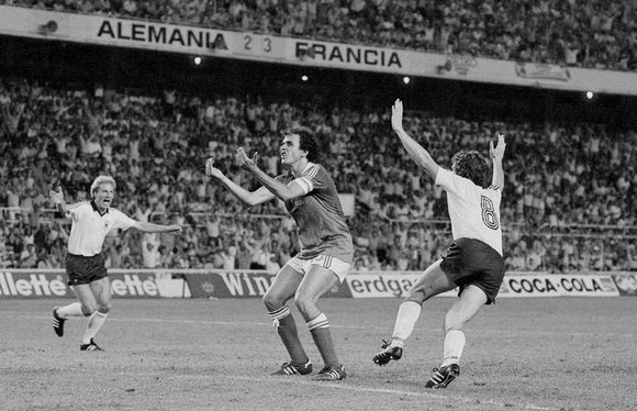 Το αξέχαστο παιχνίδι στην καριέρα του Πλατινί συνοδεύτηκε από, πιθανότατα, την πιο πικρή ήττα της καριέρας του! Ήταν 8 Ιουλίου του 1982 και στο «Σάντσεθ Πιθχουάν» της Σεβίλλης, η Γαλλία λύγιζε στα πέναλτι κόντρα στην Δυτική Γερμανία, χάνοντας μια ιστορική ευκαιρία για να βρεθεί στον τελικό του Παγκοσμίου Κυπέλλου, όπου περίμενε η Ιταλία.
