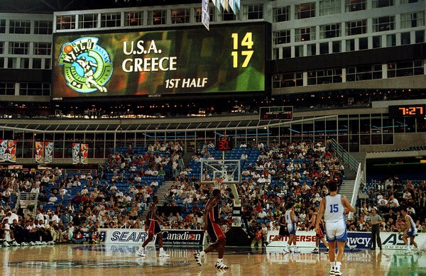 Το χρονόμετρο λέει “μηδέν”. Οι Έλληνες πανηγυρίζουν, αλλά ο μακαρίτης Καναδός ρέφερι, Άλεν Ράε, έχει διαφορετική γνώμη. Το “καλάθι είναι εκπρόθεσμο” και ο αγώνας οδηγείται στην παράταση όπου οι ΗΠΑ του κόουτς Σιζέφσκι επικρατούν με 103-95.