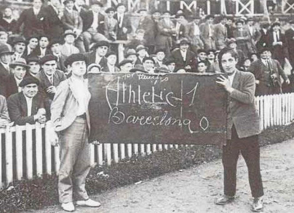 Ο “φωτεινός πίνακας” της εποχής, μάς πληροφορεί ότι το σκορ του ημιχρόνου ανάμεσα στις Αθλέτικ και Μπαρτσελόνα, είναι 1-0 υπέρ των γηπεδούχων!