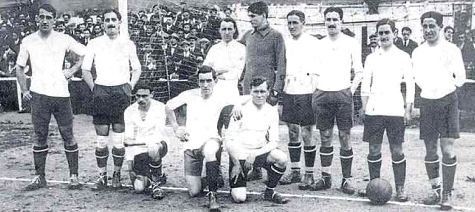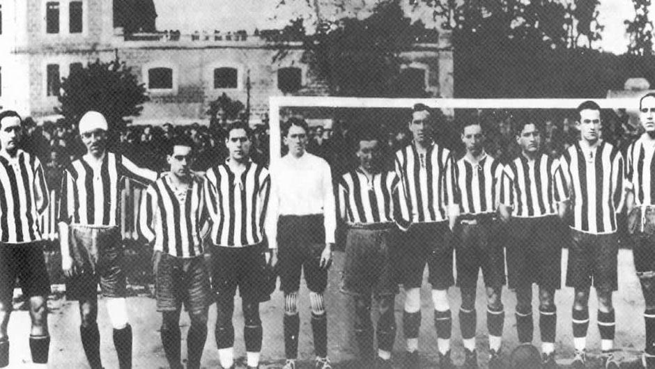 Η Κυπελλούχος ομάδα της Αθλέτικ το 1921. Δεύτερος από αριστερά, με το χαρακτηριστικό μαντήλι στο κεφάλι, ο Πιτσίτσι.