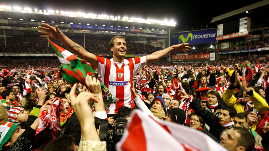 Ο Φραν Γέστε στους ώμους των φιλάθλων της Αθλέτικ μετά τη νίκη πρόκριση με 3-0 επί της Σεβίγια στον ημιτελικό του Κυπέλλου Ισπανίας (2008/09)