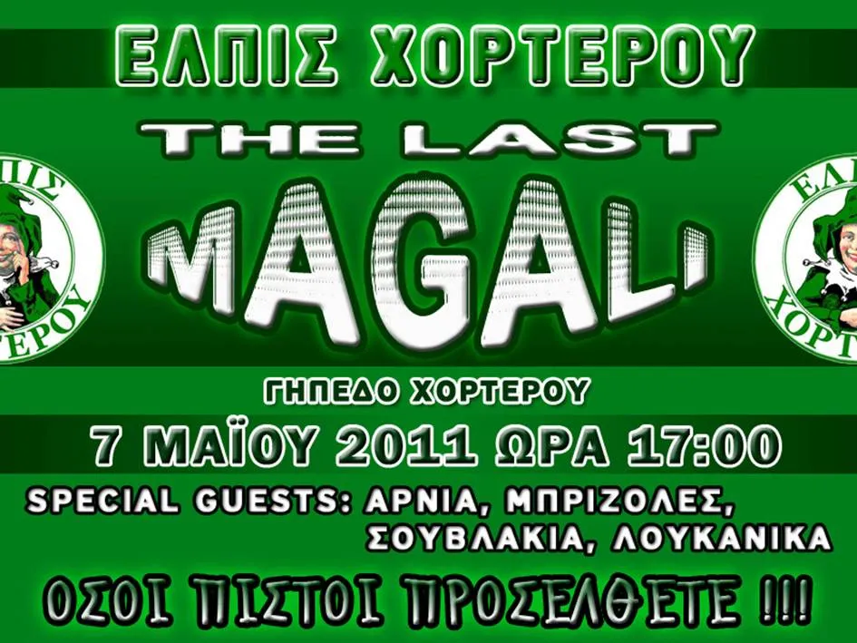 Είστε έτοιμοι για μία αξέχαστη φιέστα; Θέλετε να ζήσετε μία αληθινή ποδοσφαιρική εμπειρία; Ξεχάστε αυτά που ξέρατε και ελάτε στον τελευταίο αγώνα της χρονιάς που δίνει η Ελπίς Χορτερού τ ο Σάββατο 7 Μαΐου 2011 στις 17:00.