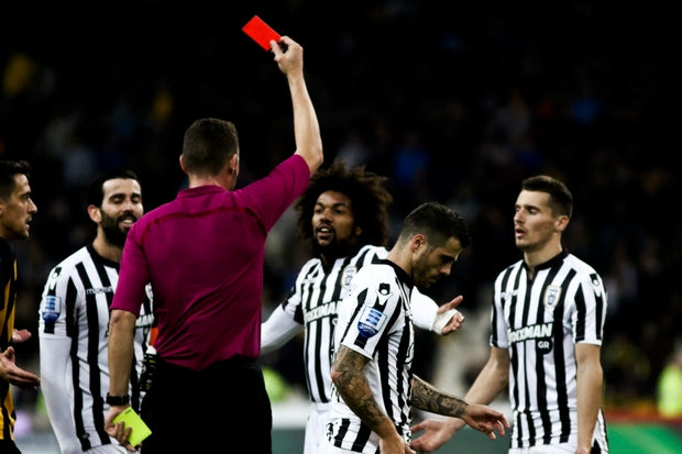 Όλος ο ΠΑΟΚ σε τρεις αποβολές. Στο πώς δεν διαχειρίστηκε το αριθμητικό πλεονέκτημα που του έδωσε η αποβολή του Αραούχο (κι ενώ ο Σαμπράνο είχε στείλει κι αυτός την πρώτη προειδοποιητική βολή γι’ αυτό που επρόκειτο να ακολουθήσει) και πώς κατάφερε να ολοκληρώσει τον αγώνα με δύο παίκτες λιγότερους, δύο παίκτες που έδωσαν ρεσιτάλ απαράδεκτης και αντιπεγγελματικής συμπεριφοράς.