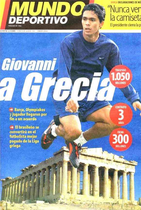 Το εντυπωσιακό πρωτοσέλιδο της Mundo Deportivo την επόμενη της συμφωνίας Μπαρτσελόνα – Ολυμπιακού για την πώληση του Ζιοβάνι (9/7/1999)
