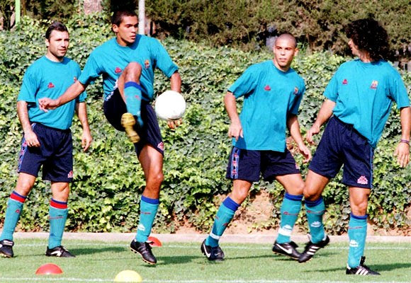Στόιτσκοφ, Ζιοβάνι, Ρονάλντο και Κόουτο σε προπόνηση της Μπαρτσελόνα (1996)