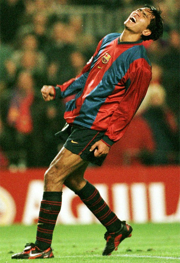 Ο Ριβάλντο έχει σκοράρει εναντίον της Εσπανιόλ και πανηγυρίζει φορώντας τη φανέλα του Ζιοβάνι, ως ένδειξη συμπαράστασης στον φίλο του που δεν υπολογιζόταν από τον Φαν Χάαλ (14/3/1999)
