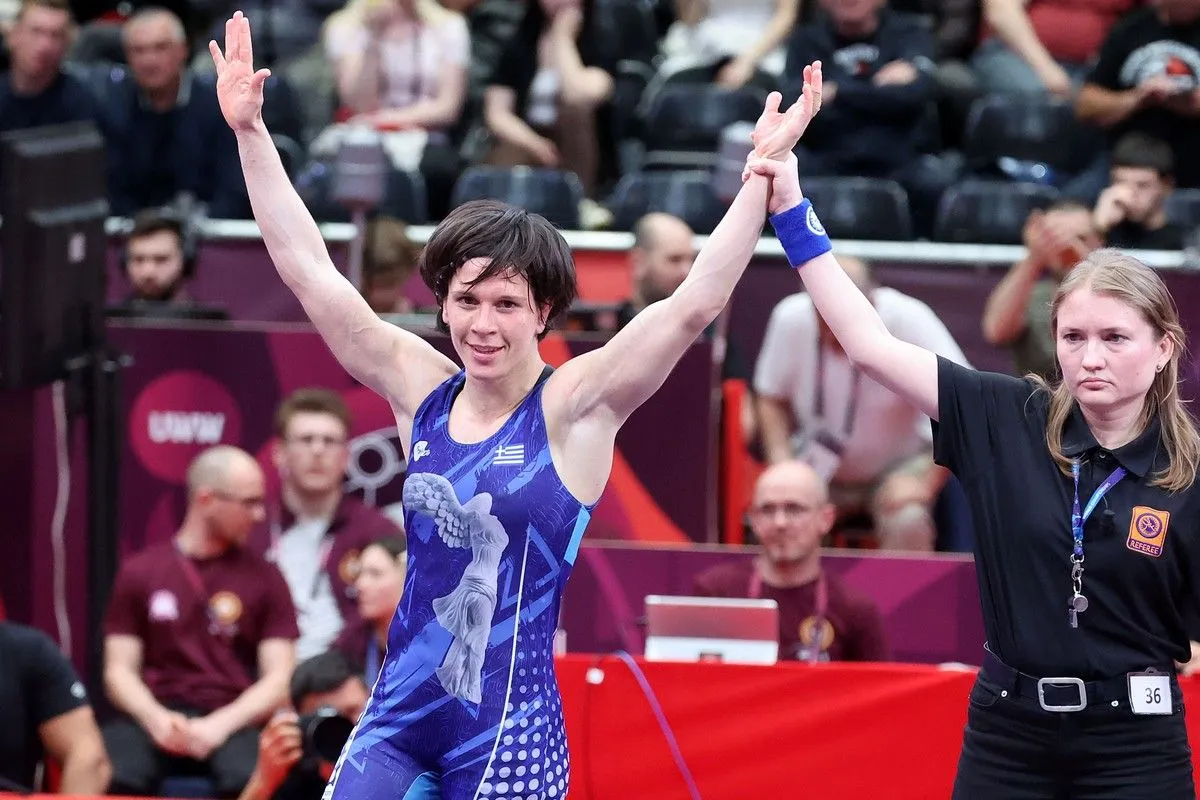Η Μεγάλη Κυρία της ελληνικής πάλης κόντρα σε όλα τα προγνωστικά, υπέταξε με 4-3 το νούμερο 1 της παγκόσμιας κατάταξης, τη Ρουμάνα Άνα, και πρόσθεσε στη συλλογή της το μοναδικό μετάλλιο, χρυσό, που της έλειπε από το Ευρωπαϊκό.