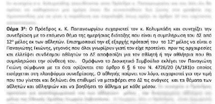 Η κα Στάθη ανέφερε ότι τοποθετήθηκα στο ΔΣ. Αυτό είναι αναληθές. Είχα την ομόφωνη στήριξη όλων των μελών του ΔΣ, συμπεριλαμβανομένης της ίδιας, για τη θέση του εκπροσώπου αθλητών, ύστερα από πρόταση του προέδρου. Τότε ήμουν «η τέλεια επιλογή» και για εκείνη.