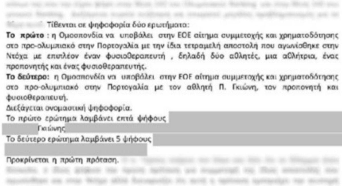 Υ.Γ. Τα θολά σημεία στις φωτογραφίες αφορούν σε τοποθετήσεις των υπόλοιπων μελών του διοικητικού συμβουλίου, που για ευνόητους λόγους δεν επιτρέπεται να αναφερθούν