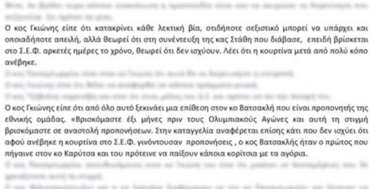Μετά από καταγγελίες του μέλους του Δ.Σ. της Ε.Φ.Ο.Επ.Α, Ξένιας Στάθη, ο Παναγιώτης Γκιώνης θέλησε να απαντήσει δημόσια μέσω γραπτής δήλωσης.
