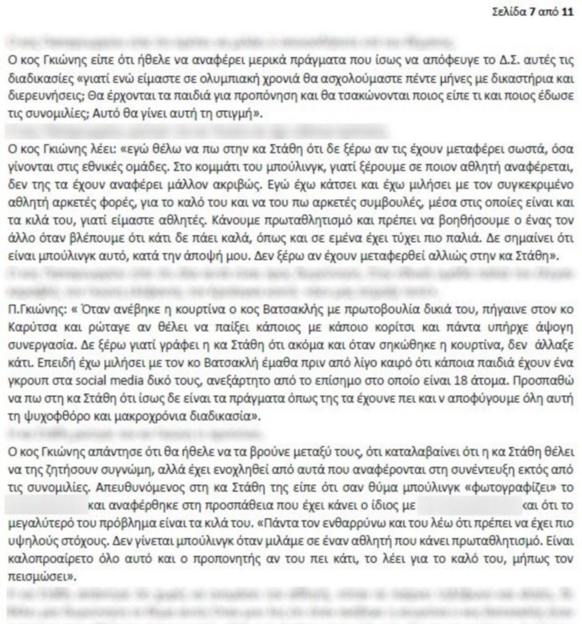 Η κα Στάθη με παρουσίασε ως υποστηρικτή σεξιστικών επιθέσεων. Αυτό είναι απολύτως ψευδές. Έχω καταδικάσει ξεκάθαρα κάθε μορφή σεξισμού και bullying. Ψήφισα τη μομφή επειδή οι καταγγελίες της κας Στάθη δημοσιεύθηκαν σε γνωστό ιστότοπο χωρίς να συζητηθούν πρώτα στο ΔΣ και, μεταξύ άλλων, περιείχαν ανακρίβειες για τον ομοσπονδιακό προπονητή.