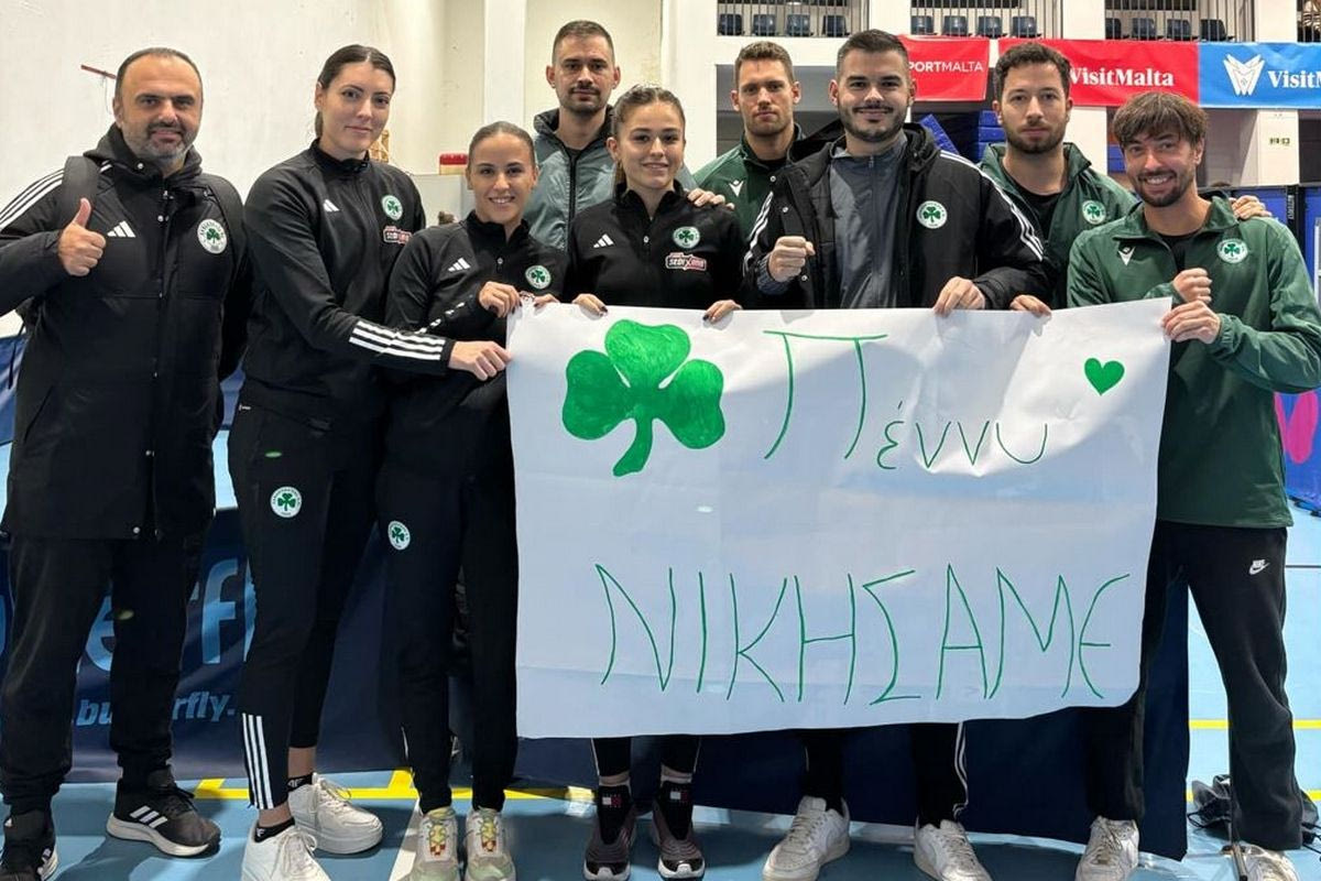 Ένα εκπληκτικό μήνυμα θέλησαν να περάσουν οι αποστολές πινγκ πονγκ του Παναθηναϊκού σε άνδρες και γυναίκες μετά τις νίκες τους στο Europe Trophy, αφιερώνοντας τα επιτυχή αποτελέσματα στην Πέννυ Ρόγκα, που πρόσφατα ανέφερε ότι νίκησε τη μάχη με τον καρκίνο.