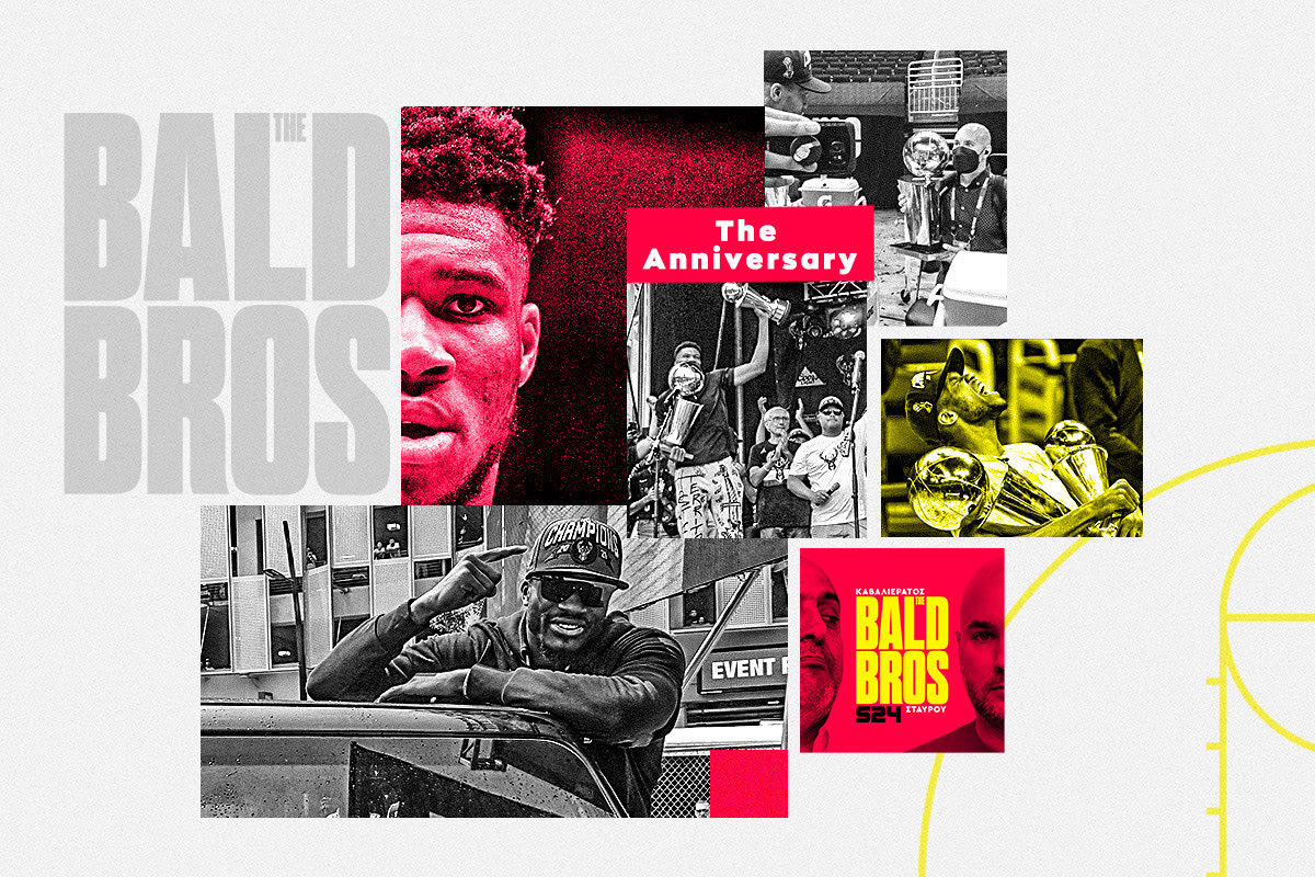 Υπάρχουν στιγμές που λέμε πως “το ζήσαμε”. Υπάρχουν και άλλες στις οποίες αναρωτιόμαστε αν πραγματικά συνέβησαν όλα αυτά. Η ιστορία έγραψε πως οι Μιλγουόκι Μπακς αναδείχθηκαν πρωταθλητές NBA το 2021, με τον Σπύρο Καβαλιεράτο και τον Χάρη Σταύρου να γυρίζουν στα μικρόφωνα για το επετειακό 20ο επεισόδιο του Bald Brothers και να θυμούνται που και πότε είδαν για πρώτη φορά τον Γιάννη και τον Θανάση Αντετοκούνμπο να ξεδιπλώνουν τα ταλέντα τους.