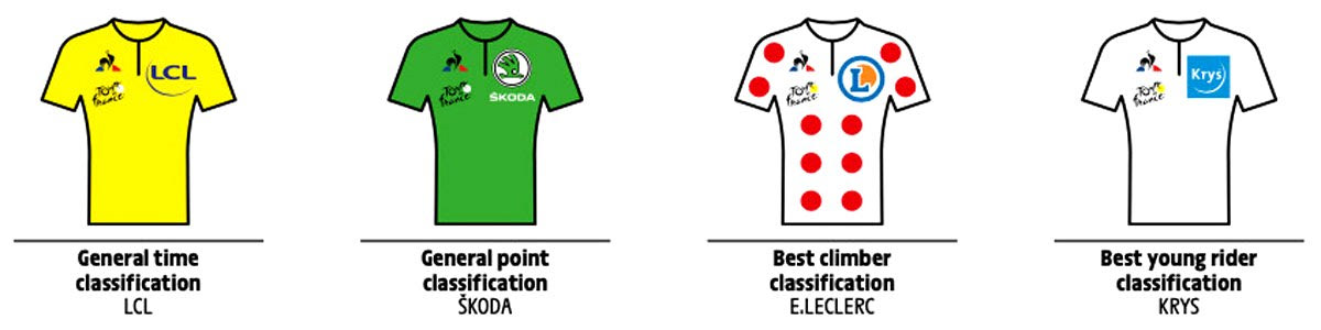 Στον Γύρο Γαλλίας, εκτός από τη γενική κατάταξη, υπάρχουν και άλλες κατατάξεις, είτε με χρόνο, είτε με πόντους. Ο αθλητής που προηγείται κάθε μέρα σε κάθε μια από αυτές, φοράει μια χαρακτηριστική φανέλα για να ξεχωρίζει. Την κίτρινη ο πρωτοπόρος της γενικής, την πράσινη ο πρωτοπόρος στη βαθμολογία των πόντων, την πουά ο πρωτοπόρος στη βαθμολογία των αναβάσεων και τη λευκή ο καλύτερος νέος αθλητής. Ας δούμε λίγο πιο αναλυτικά αυτές τις τέσσερις κατηγορίες, μαζί με δυο άλλες, μικρότερης σημασίας.