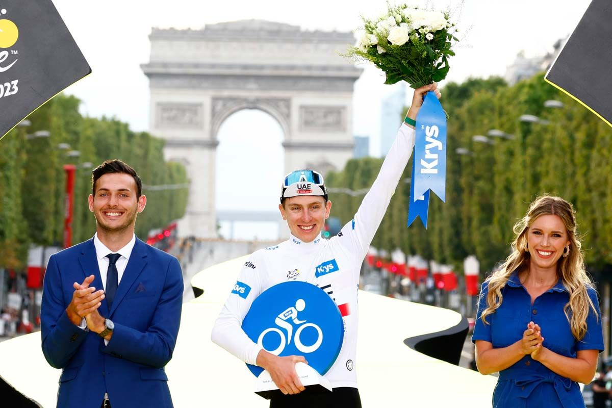 Η λευκή φανέλα πρωτοφορέθηκε το 1975 (εκτός από τις διοργανώσεις 1989-1999). Ο Ταντέι Πογκάτσαρ είναι από πέρυσι ο απόλυτος ρέκορντμαν της συγκεκριμένης κατηγορίας, έχοντας κερδίσει τη λευκή φανέλα τέσσερις φορές (τέσσερις συνεχόμενες χρονιές, 2020-2023). Στη δεύτερη θέση, με τρεις λευκές φανέλες ο καθένας στην κατοχή του, ακολουθούν δυο ποδηλάτες, ο Γερμανός Γιάν Ούλριχ (1996, 1997 & 1998) και ο Λουξεμβούργιος Άντι Σλεκ (2008, 2009 & 2010). Στο παρελθόν την έχουν κερδίσει μεγάλα ονόματα στο ξεκίνημα της καριέρας τους, όπως ο Λοράν Φινιόν (Γαλλία, 1983), ο Γκρεγκ Λεμόντ (ΗΠΑ, 1984) και ο Μάρκο Παντάνι (Ιταλία, 1994 & 1995). Στα τελευταία χρόνια την έχουν κερδίσει ο Αλμπέρτο Κονταδόρ (2007), ο Νάιρο Κιντάνα (2013 & 2015), ο Τιμπό Πινό (2014), τα αδέρφια Γέιτς (ο Άνταμ το 2016 και ο Σάιμον το 2017) και ο Έγαν Μπερνάλ (2019).