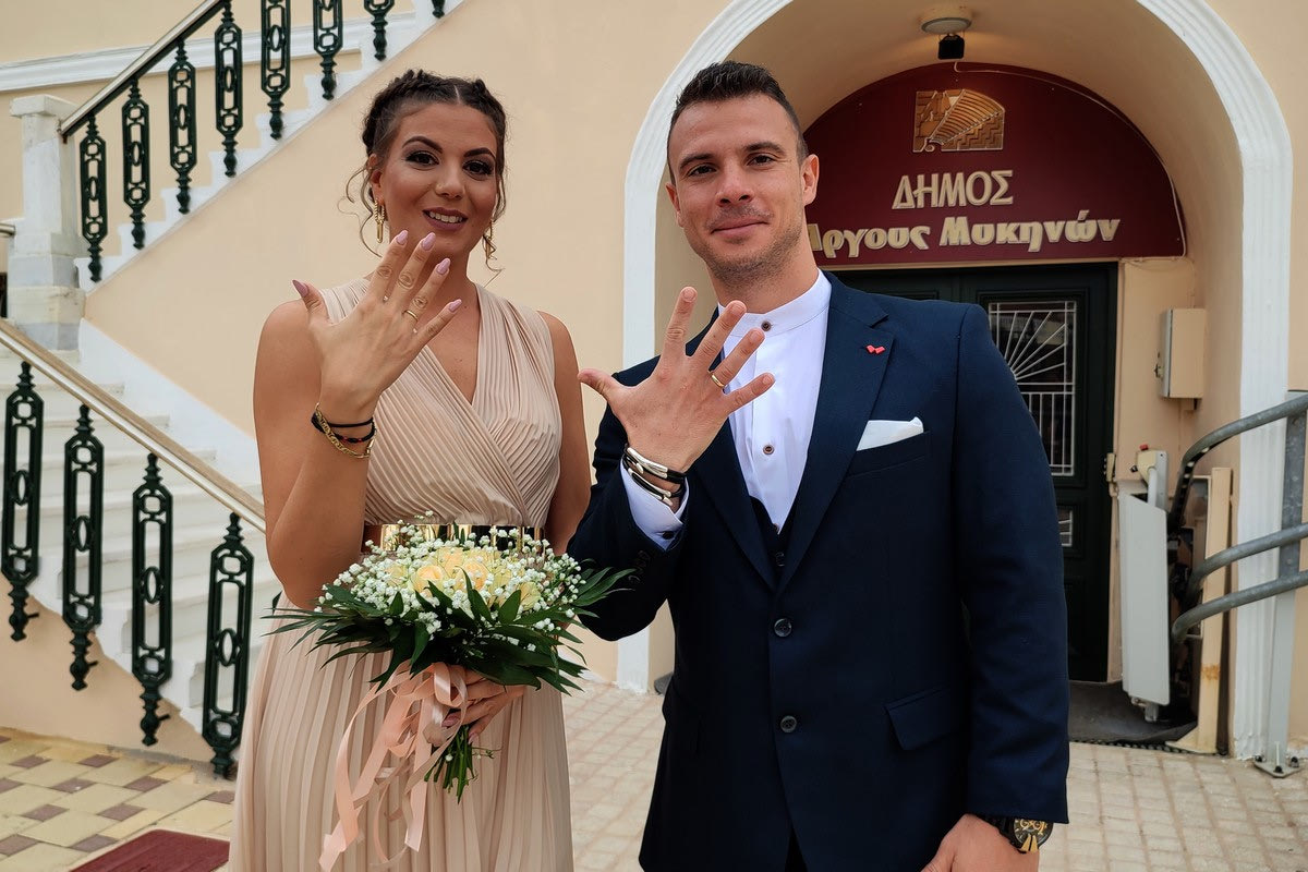 Ο σπουδαίος Έλληνας ποδηλάτης και η σύντροφός του παντρεύτηκαν στο Παλιό Δημαρχείο Άργους, ενώ κουμπάροι τους ήταν o επιχειρηματίας Κωνσταντίνος Μάκαρης και η σύζυγος του Έλενα.