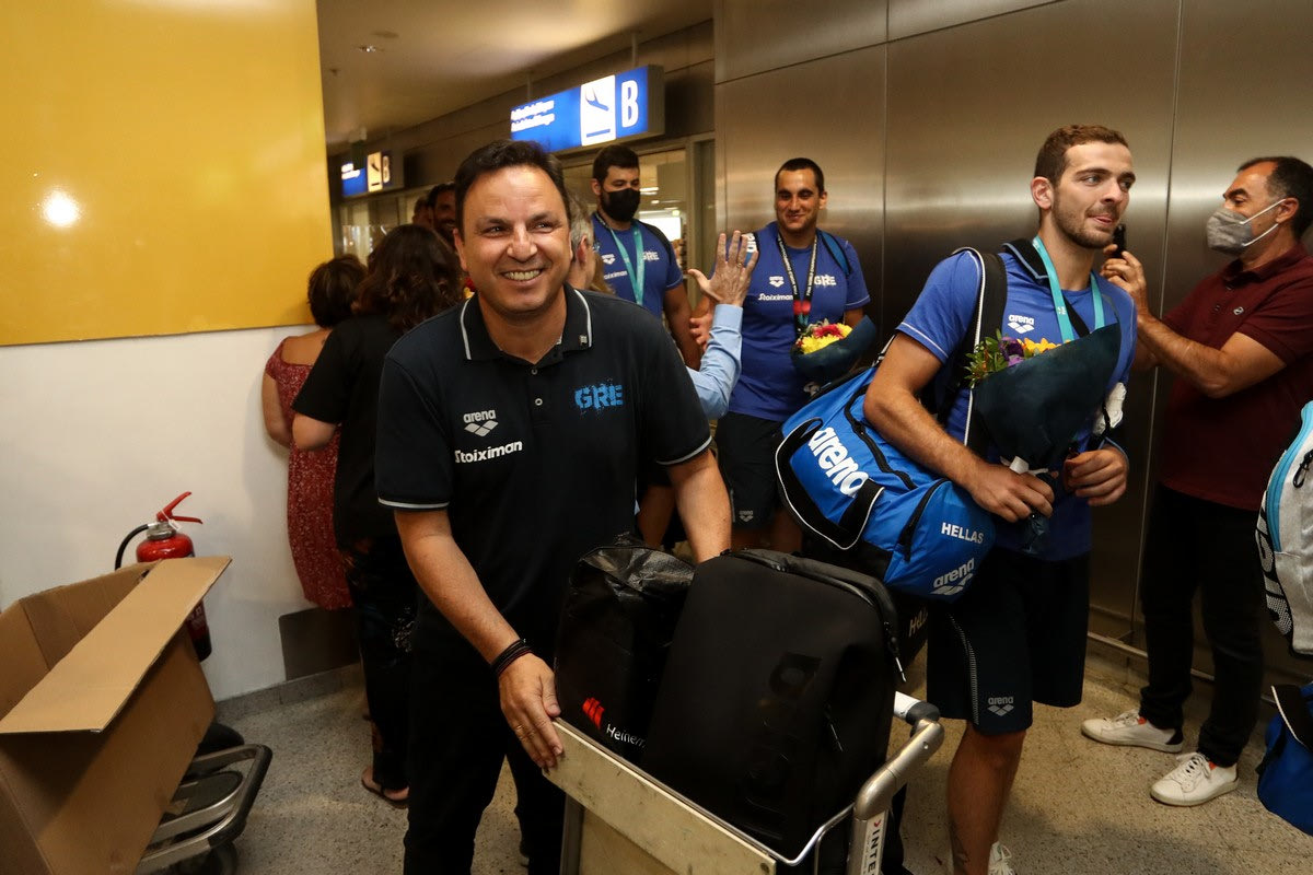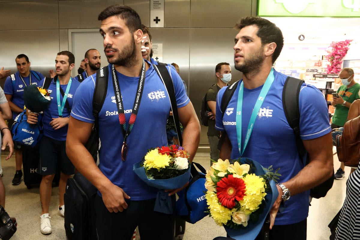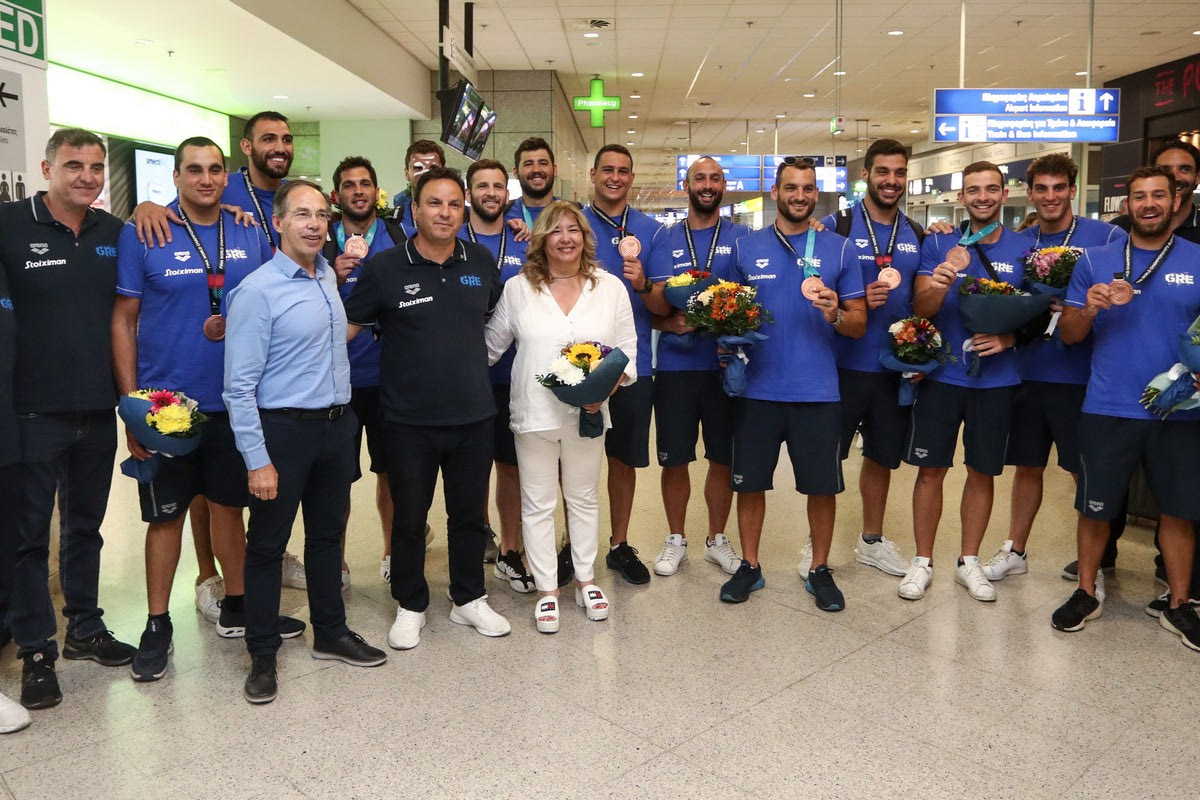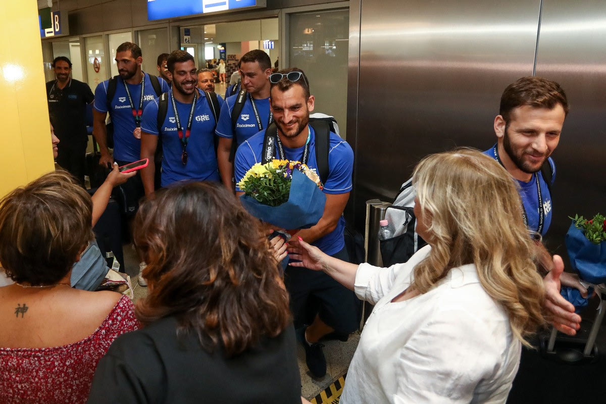Η Εθνική πόλο ανδρών επέστρεψε στην Ελλάδα μετά το χάλκινο μετάλλιο στο Παγκόσμιο Πρωτάθλημα της Βουδαπέστης και τη νίκη επί της Κροατίας με 9-7.