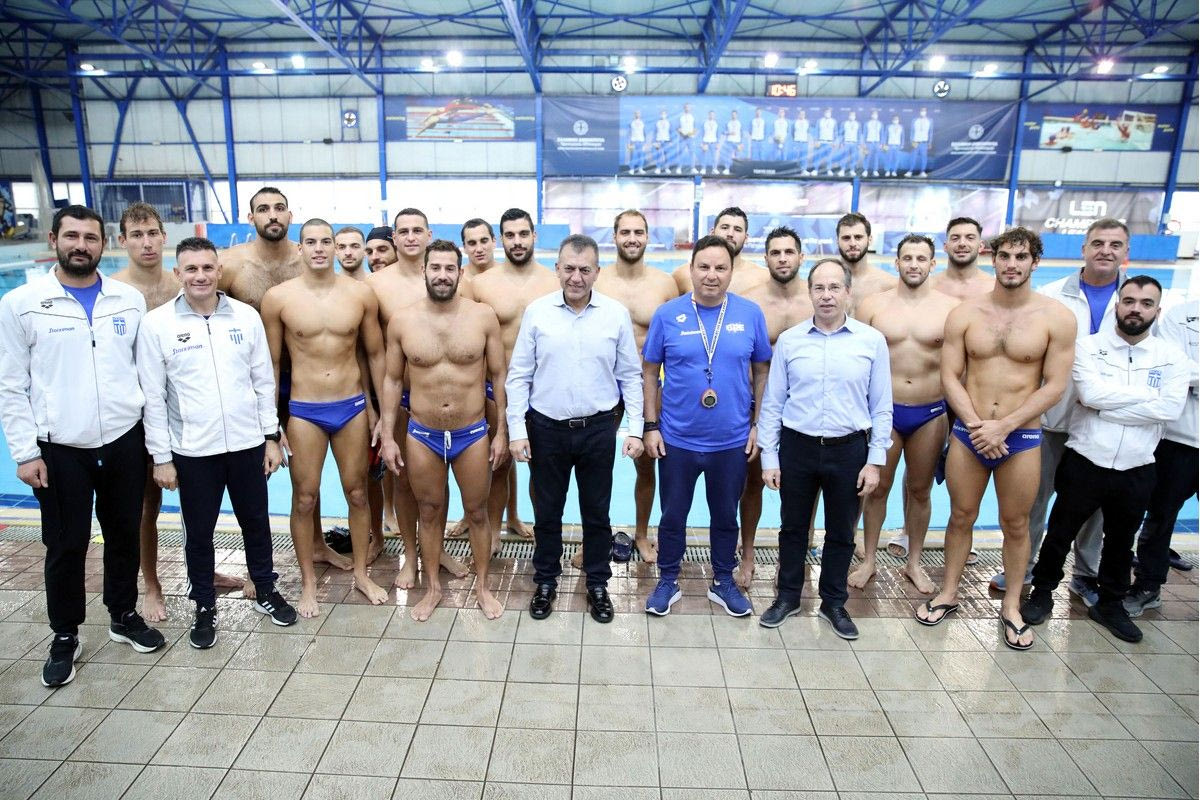 Στο πλευρό του Γιάννη Βρούτση βρισκόταν και ο Γενικός Γραμματέας Αθλητισμού – και θρύλος του Ελληνικού πόλο – Γιώργος Μαυρωτάς, με τον Αναπληρωτή Υπουργό Αθλητισμού να τονίζει ότι η πολιτεία θα είναι στο πλευρό της Εθνικής.