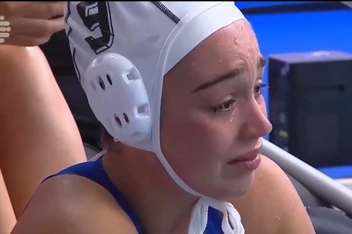 Ο φακός έπιασε μάλιστα τη Χριστίνα Σιούτη να ξεσπά σε κλάματα λίγα δευτερόλεπτα προτού λήξει η αναμέτρηση.