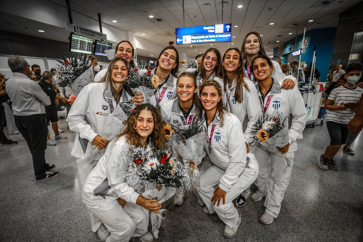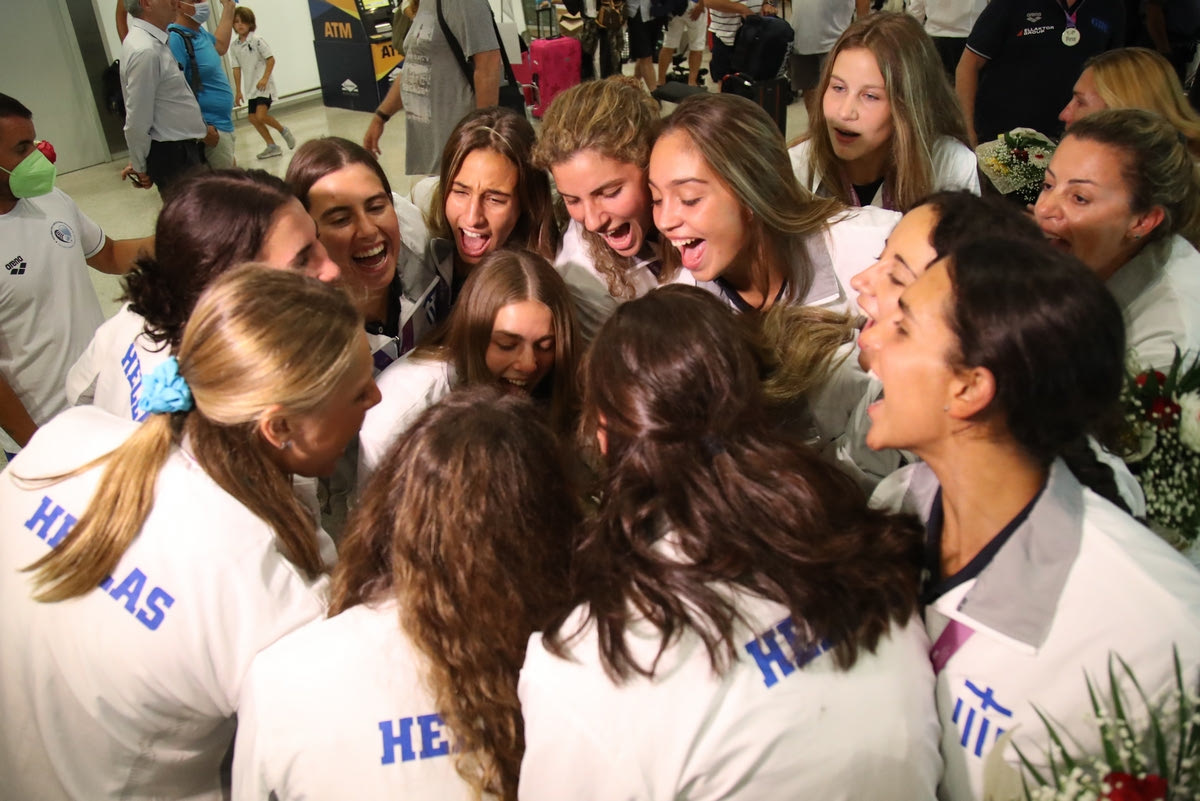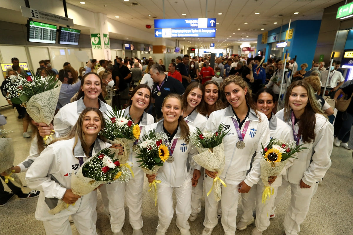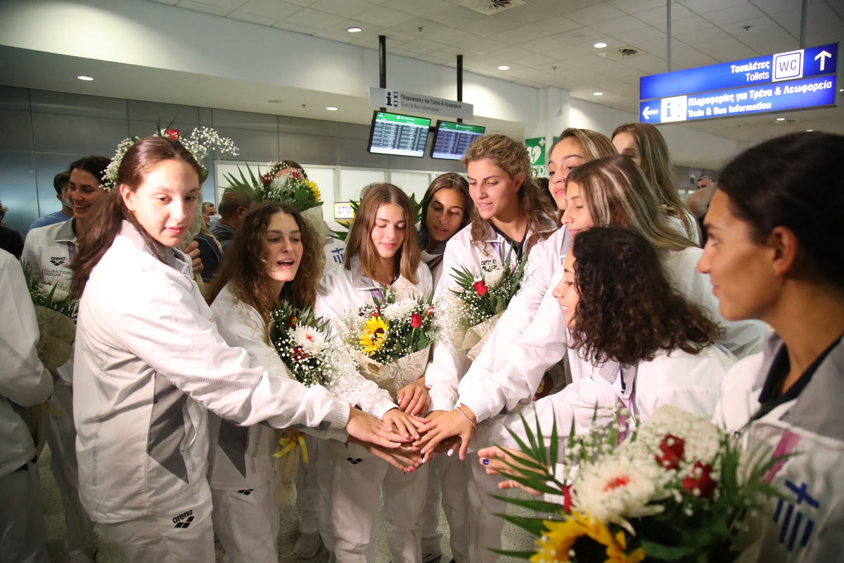 Η παίκτριας της Ευτυχίας Καραγιάννη επέστρεψαν την Τρίτη (9/8) στην Ελλάδα, με φίλους και συγγενείς να περιμένουν τις νεαρές πρωταγωνίστριες στο Ελ. Βενιζέλος, για να τις συγχαρούν.