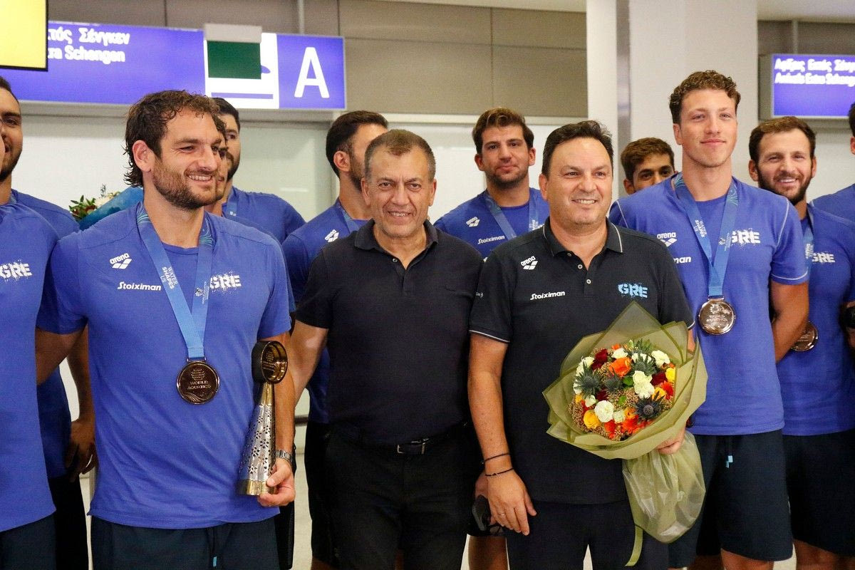Η Εθνική ομάδα πόλο ανδρών επέστρεψε την Παρασκευή (25/7) στην Ελλάδα, έχοντας κατακτήσει το χάλκινο μετάλλιο στο παγκόσμιο πρωτάθλημα, με τα χαμόγελα να δίνουν και να παίρνουν.