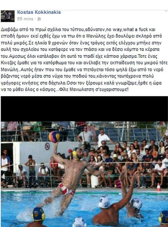 Ο Κώστας Κοκκινάκης εκμεταλλεύθηκε τοπ χαμό που ακολούθησε στα social media και trollαρε τους πάντες “εξηγώντας” πως ο φίλος του έφτασε στο σημείο να πετάει πάνω από το νερό. Όλα ξεκίνησαν όταν σε ηλικία 9 ετών ο Μυλωνάκης έπιασε ένα τράγο στην αυλή του σχολείου του… Η συνέχεια στο post του 40χρονου φουνταριστού του Υδραΐκού…