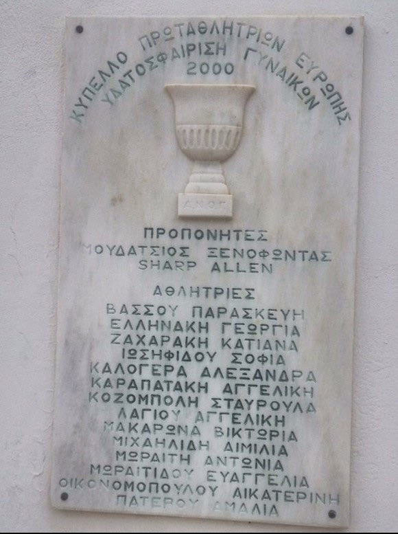 Η μαρμάρινη πλάκα στο κολυμβητήριο “Αντώνης Δημητρόπουλος”