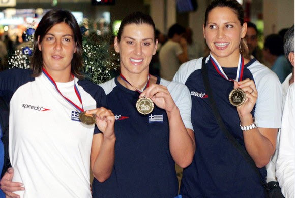 Πέντε πρωταθλήτριες Ευρώπης το 2000 στέφθηκαν και “αργυρές” Ολυμπιονίκες στο κολυμβητήριο του ΟΑΚΑ: Η Γεωργία Ελληνάκη η τερματοφύλακας, η Βούλα Κοζομπόλη νυν πρόεδρος του συλλόγου Ελλήνων Ολυμπιονικών, η Εύη Μωραϊτίδου που εγκατέλειψε το πόλο πρωταθλήτρια Ευρώπης με τη Βουλιαγμένη, η Μωραίτη, η Αγγελική Καραπατάκη που έχει παντρευτεί τον Νίκο Δεληγιάννη και φυσικά η Κατερίνα.