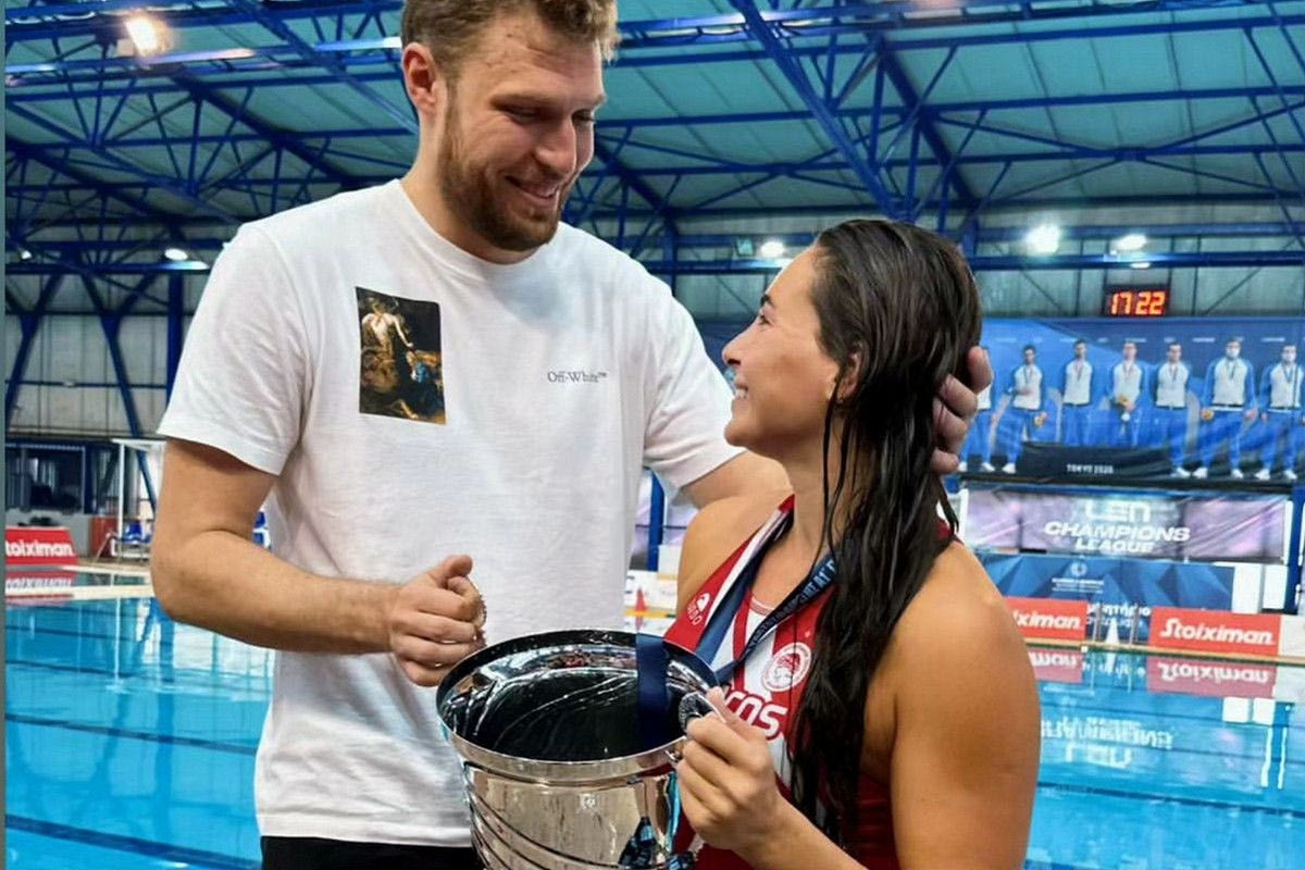 Δίπλα στη Νικόλ Ελευθεριάδου, ο Βεζένκοβ πανηγύρισε μαζί της το 11ο σερί πρωτάθλημα στο πόλο Γυναικών του Ολυμπιακού
